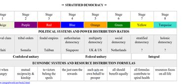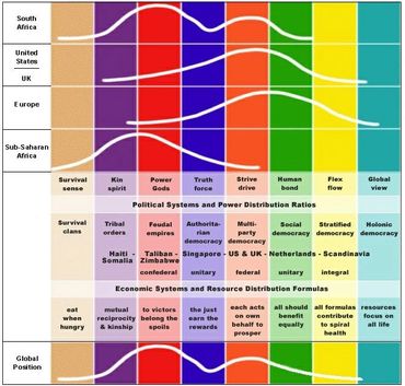 Note, both Integral Theory and Spiral Dynamics use color themes for the levels, but they do not use the same color themes.