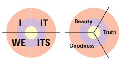 Quadrants - 4 different perspectives of 'subjective and objective' and 'individual and collective'; info below